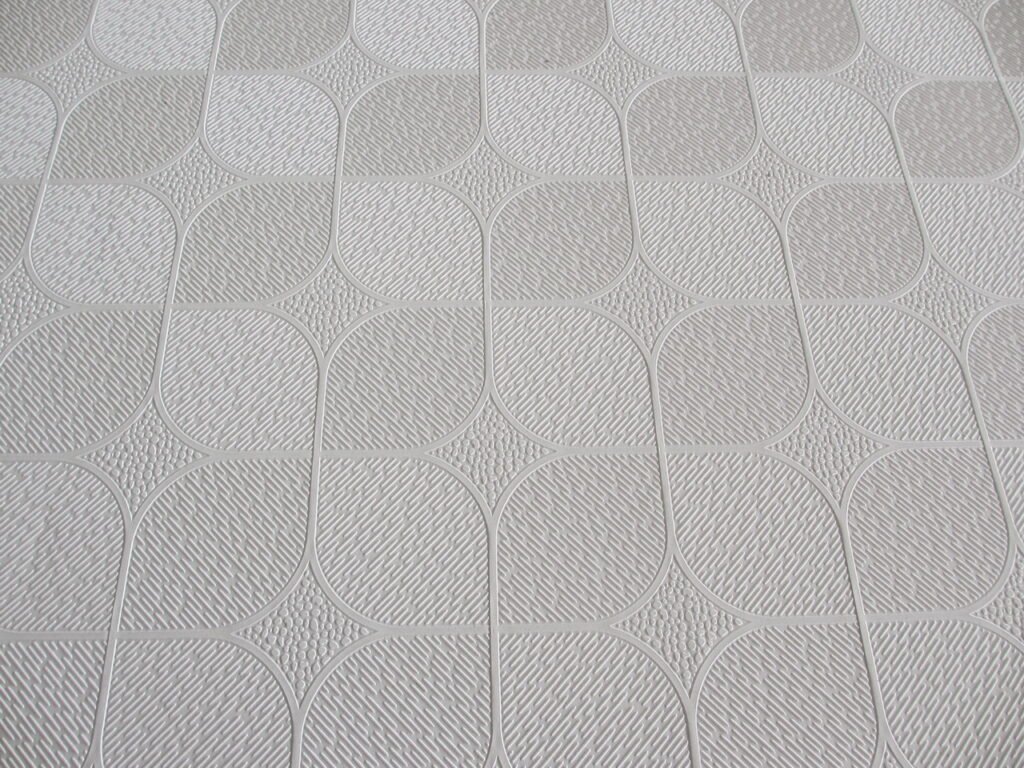 PVC gypsum ceiling tile is made of high quality paper-faced gypsum board with a layer of PVC on surface and aluminum foil on its back. It is a environmental friendly, light weight, high quality, fireproof, waterproof and corrosion-resistant decorative ceiling board. Application: It can be widely used in high fireproof and waterproof requirement environment, such as hotel, hospital, school, house and factory etc